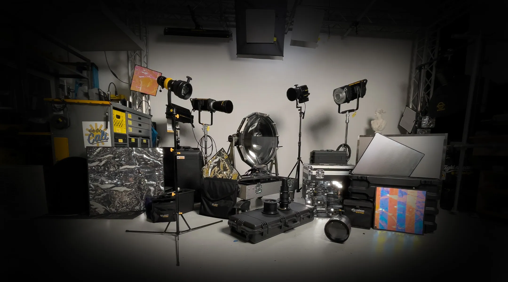 Dedolight Rentals is operated by Dedolight California for all US clients. We will offer Neo bi-color and color kits, PB70 units, Eflect kits, Lightstream kits, Beam Intensifiers...and more.